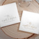 Elegant and modern, these gold rehearsal dinner napkins feature the phrase “the night before” in stylish handwritten script with a small heart accent. Designed with a minimalist layout, these wedding napkins add a chic, personal touch to your celebration—perfect for adding a warm, elegant glow to your rehearsal dinner.