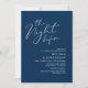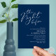 Announce your happily ever after in style with our modern classy navy blue theme design (The Night Before) wedding rehearsal celebration invitation card. It is ideal for couples who have decided to celebrate the night before their big day. With its sophisticated yet playful design, this invitation is sure to set the tone for an unforgettable event. The invitation card features modern romantic script design, adding a touch of timeless elegance to your celebration. Designed by TeeshaDerrick