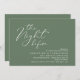 Announce your happily ever after in style with our modern aesthetic sage green theme design (The Night Before) wedding rehearsal celebration invitation card. It is ideal for couples who have decided to celebrate the night before their big day. With its sophisticated yet playful design, this invitation is sure to set the tone for an unforgettable event. The invitation card features modern romantic script design, adding a touch of timeless elegance to your celebration. Designed by TeeshaDerrick