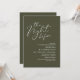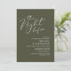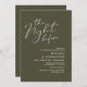 Announce your happily ever after in style with our modern classy aesthetic rustic olive green theme design (The Night Before) wedding rehearsal celebration invitation card. It is ideal for couples who have decided to celebrate the night before their big day. With its sophisticated yet playful design, this invitation is sure to set the tone for an unforgettable event. The invitation card features modern romantic script design, adding a touch of timeless elegance to your celebration. Designed by TeeshaDerrick