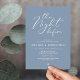 Announce your happily ever after in style with our modern dusty blue theme design (The Night Before) wedding rehearsal celebration invitation card. It is ideal for couples who have decided to celebrate the night before their big day. With its sophisticated yet playful design, this invitation is sure to set the tone for an unforgettable event. The invitation card features modern romantic script design, adding a touch of timeless elegance to your celebration. Designed by TeeshaDerrick