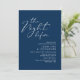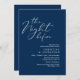 Announce your happily ever after in style with our modern aesthetic navy blue theme design (The Night Before) wedding rehearsal celebration invitation card. It is ideal for couples who have decided to celebrate the night before their big day. With its sophisticated yet playful design, this invitation is sure to set the tone for an unforgettable event. The invitation card features modern romantic script design, adding a touch of timeless elegance to your celebration. Designed by TeeshaDerrick