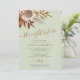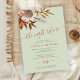 Modern bohemian botanical watercolor boho autumn fall flowers and foliage with dried leaves making a chic autumn wedding rehearsal dinner invitation with a trendy handwriting calligraphy script and earthy terracotta beige color palette on a light sage green background.