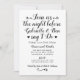 "The night before they say I do" invitations for a casual rehearsal dinner and drinks event (can be customized) gathering to celebrate before the wedding day. Design features black handwritten rustic style typography, scroll, and heart accents. Back of the card features a pattern of small black hearts. White background colour can be modified.