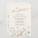 Elegant rustic chic boho floral botanical spring summer pastel colourful wild flowers cream wedding rehearsal dinner invitation with a trendy handwriting calligraphy script.