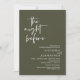 Announce your happily ever after in style with our modern olive green theme design (The Night Before) wedding rehearsal celebration invitation card. It is ideal for couples who have decided to celebrate the night before their big day. With its sophisticated yet playful design, this invitation is sure to set the tone for an unforgettable event. The invitation card features modern romantic script design, adding a touch of timeless elegance to your celebration.