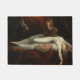 This design features a painting by the Swiss artist Henry Fuseli (1741–1825), who spent much of his life in Britain. It depicts a woman lying on a bed in deep sleep with her arms thrown behind her head. There is a demonic creature crouched on her chest: he is an incubus from European folklore. There is also a donkey poking its head through a red curtain in the background, and the donkey is looking intently at the demon. The painting has a dreamlike and haunting evocation of sensuality and obsession. Some critics have suggested that the painting portrays a dreaming woman and the content of her nightmare. The original artwork was painted by Henry Fuseli in 1781.