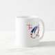 White coffee mug with logo from "O" flag logo.