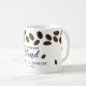 Trendy and unique coffee wedding favour mug designed with coffee beans . Personalize them with the bride and groom's names, using stylish typography for a custom touch. Create your own wedding favours with this unique gift, perfect for bridal showers and bridesmaid gifts. Order in bulk for your coffee-themed party favours!
