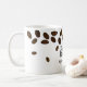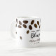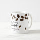Trendy and unique coffee wedding favour mug designed with coffee beans . Personalize with bride and groom names and wedding date.