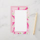 Breast cancer awareness pink ribbon and white daisy design on pink gingham background
