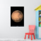 This image is a large mosaic of the Valles Marineris [VAL-less mar-uh-NAIR-iss] hemisphere of Mars. It is a view similar to that which one would see from a spacecraft. The lower centre of the scene shows the entire Valles Marineris canyon system, more than 3,000 kilometres (1,860 miles) long and up to 8 kilometres (5 miles) deep, extending from Noctis Labyrinthus, the arcuate system of graben to the west, to the chaotic terrain to the east. Many huge ancient river channels begin from the chaotic terrain and north-central canyons and run north. Many of the channels flowed into a basin called Acidalia Planitia, which is the dark area in the extreme north of this picture. The three Tharsis volcanoes (dark red spots), each about 25 kilometres (16 miles) high, are visible to the west along with Olympus Mons the largest volcano on the planet. Very ancient terrain covered by many impact craters lies to the south of Valles Marineris. The polar cap can be seen to the north.