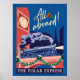 The Polar Express | Check out this vintage style train graphic of The Polar Express crossing through the clock tower to the North Pole!