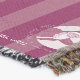 Purple striped pattern featuring Santa Claus and the silver bell, featuring the phrases "Believe", "The first gift of Christmas", and "The bell rings for me".