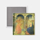 The Prado Annunciation by Fra Angelico, c.1435. The scene is divided in three parts, the garden, the Angel's arch and the Virgin's arch. Adam and Eve are being expelled from the Garden of Eden and a ray of divine light illuminates through the dove of the Holy Spirit, the Virgin, who bends accepting his duty submissively.