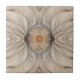 Ceramic tile design from "The Primal Om," an Apophysis fractal by Susan Wallace. Copyright © 2009, Susan Wallace. Abstract design composed of marble-textured petals spiralling inward to a radiant centre. In muted shades of tan, blue, gold and cream.