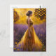 A woman in a gold dress in a lavender and dandelion field with honeycombs collage She is the protector of the bees AI generated art
