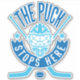 Whether you are an ice hockey goalie or a goalie fan, here's a design for you. 2 coloured, with crossed hockey sticks and puck and the text: The Puck Stops Here.
