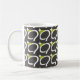 The Q mug features small chartreuse Quaero Qs in a geometrical pattern.