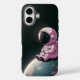 Drift through space with a sense of calm and curiosity. This case features a soft pink astronaut seated on a distant planet, gazing downward in quiet reflection — surrounded by stars and infinite darkness.