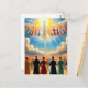 Here's a retro-style scene depicting The Rapture. Vividly colourful, this art shows a scene of Jesus appearing in the heavens while a crowd of people below look on.