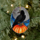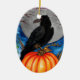 Original painting by Sandra Gale for the Halloween season featuring a black raven perched on a pumpkin. Great design for kids and adults to celebrate the spooky Halloween holiday.