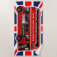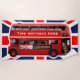 Type anything you like in the editable text box to personalize this cool beach towel featuring a vintage red Routemaster bus, a famous symbol of London and England, set on the Union Jack!