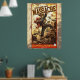 The contrast between the old-world charm of the Wild West and the nightmarish horror of the undead creates a gripping tension, making this showdown a true battle for survival. Poster is designed after the old golden age Hollywood westerns.