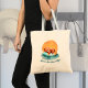 Adorable "summer vibes" tote bag features watercolor digital art design of a cute lazy brown bear floating down the river with "livin' the river life" text