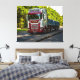 The vibrant red-and-white livery gleams against the backdrop of rich, green woodland, reflecting the hard-working spirit of rural industry against the tranquil beauty of the English countryside.