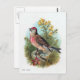Beautiful vintage image of a very colourful rose linnet perched on a branch and surrounded by leaves and flowers.