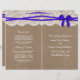The rustic blue bow wedding collection is a stunning design featuring a lovely rustic burlap effect background with a romantic vintage white lace effect trim and a stunning blue bow.