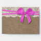 The rustic pink bow wedding collection is a stunning design featuring a lovely rustic burlap effect background with a romantic vintage white lace effect trim and a stunning pink bow.