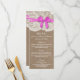 The Rustic Pink Bow Wedding Collection Menu Card