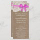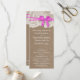 The rustic pink bow wedding collection is a stunning design featuring a lovely rustic burlap effect background with a romantic vintage white lace effect trim and a stunning pink bow. These programs can be personalized for your special occasion and would make the perfect template for weddings, bridal showers, engagement parties, birthday parties and much, much more.
