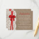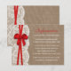 The rustic red bow wedding collection is a stunning design featuring a lovely rustic burlap effect background with a romantic vintage white lace effect trim and a stunning red bow.