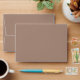 This modern envelope design features an optional mocha exterior and a tiny repeating pattern interior of a star-shaped twinkling light on a chocolate brown background. Exterior colour is optional and can be changed to the colour of your choice. Add your name(s) and address on the top flap using the provided template. Search ID594 to see other products in this coordinating Christmas set.