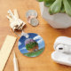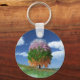 Four seasons appear on a lone tree standing in a grassy meadow. The top branches are bare and snow-covered, giving way to pink blossoms, which turn to dark green leaves, which turn orange and gold and fall to the ground. Amid the autumn leaves on the ground are blue spring flowers and melting snow.