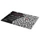 Personalized black with white wind blown petals and a cute red heart design. Flowers and swirling white petals against a bold black background. Original digital painting. Crisp edges, sharp lines and white dots and swirling petals. Personalize all text. Add your name, and keep or change the quote “the secret ingredient is always love”.