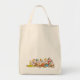 The printing came out very well, better than I had anticipated. The natural color fabric is sturdy with strong seams and comfortable handles. This tote fits easily over my shoulder. As it is filled, the bottom flattens out--very cool! I would buy this product again. This grocery tote holds a lot of groceries! The image quality was very good. The colors were a little darker than I had expected. The darkness may have been due to printing on a natural color fabric rather than on white. The cat design is attractively centered on the tote. The spirit of the design is very lively, just as it appears on the Zazzle website.