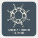 Designed to match our The Blue Compass wedding invitations and accessories this nautical chic wedding sticker features a vintage style hand drawn ship's wheel illustration in navy blue.