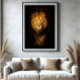 The lion’s piercing gaze radiates respect and power. Emerging from the darkness, his imposing presence symbolizes courage, leadership, and the untamed majesty of the wild.