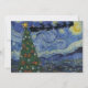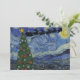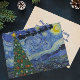 The Silent Night Flat Christmas Holiday Card — This holiday version of Vincent Van Gogh's infamous 'The Starry Night' painting features a large decorated Christmas tree, and the silhouette of Santa Claus and his reindeer flying soaring through the night sky.