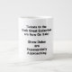 A Large Coffee Mug with the words "Tickets to the Sixth Great Extinction are Now On Sale! Show Dates are Exponentially Approaching".