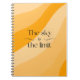 The Sky is the Limit motivational quote on a cascading orange gradient background notebook. A minimalist design with chic, curved typography in black