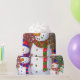 This image is of a snowman family, all dressed in their coloured winter hats and scarves. A carrot for their nose and coloured buttons for their eyes and mouth. A green and red backround with snow confetti has been added. A red border was added. This wrapping paper is available in assorted styles and sizes.