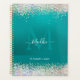Modern, elegant ladies` and girls`, frosty glittery, glam metallic teal colour, luxury, Monogram, Script Name, next year, 20XX Planner by PiccoGrande.