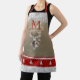 Modern, elegant ladies` and girls`, cute deer head illustrated, frosty glitter at the top and bottom, grayish sand colour base, and luxury vibe, Monogram, Script Name apron, with easily editable, custom text: `The Best Helper to Santa`, year, 20XX, designed by PiccoGrande.