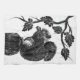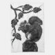 A black and white illustration of a squirrel holding an acorn. Designed to look like a lino print.
