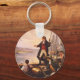 Francis Scott Key standing on boat, with right arm stretched out toward the United States flag flying over Fort McHenry, Baltimore, Maryland.